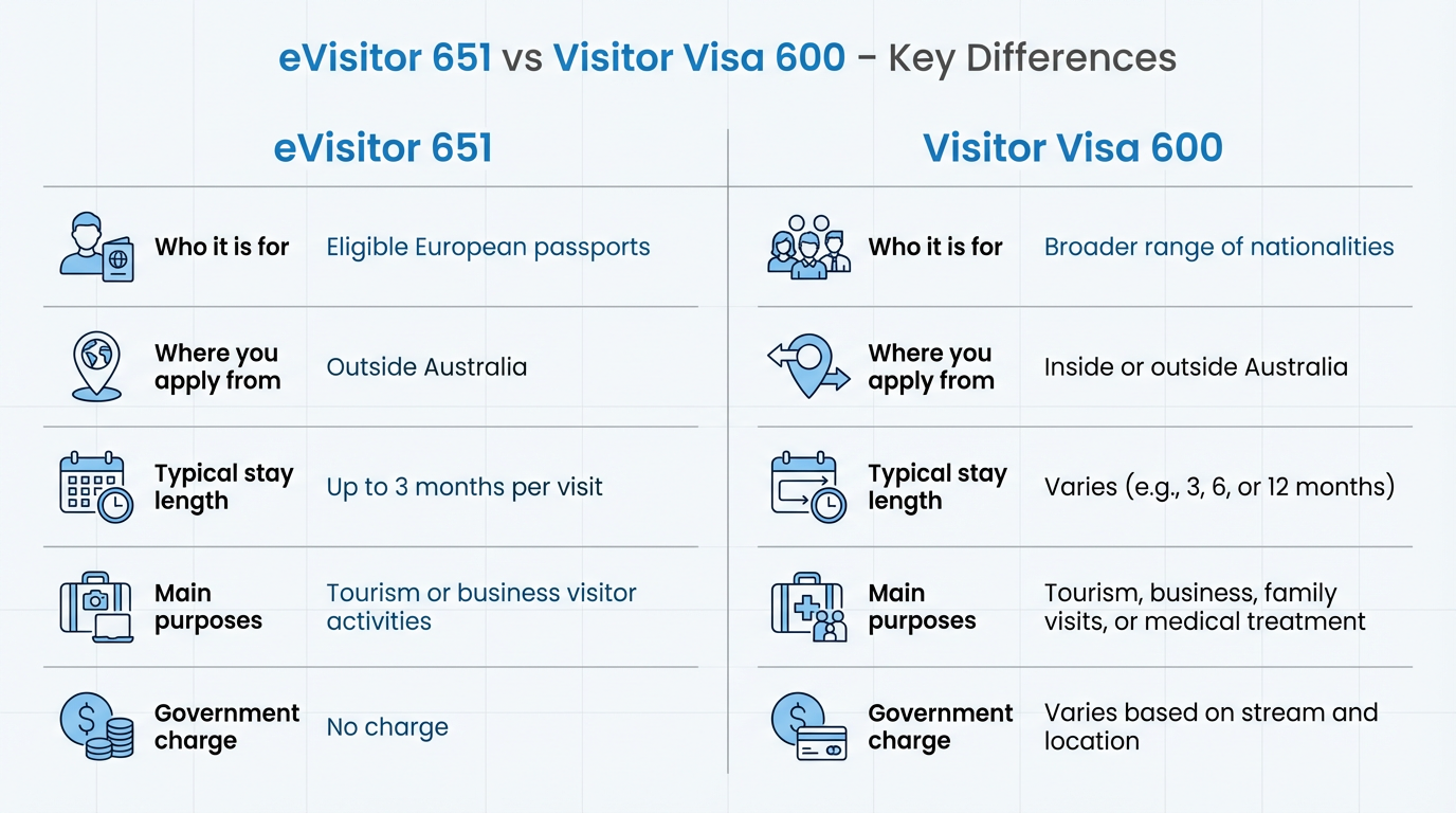 Quick Comparison — eVisitor 651 vs Visitor Visa 600